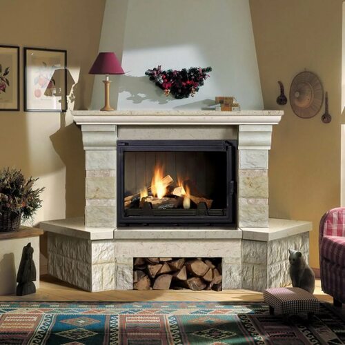 Облицовка углового камина природным камнем придает помещению элегантность и неповторимость. Выберите камень, который сочетается с остальным декором комнаты, и облицуйте им поверхность камина. Природный камень добавит шарм и уют вашему интерьеру.
