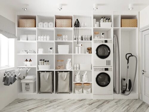 При создании постирочной в доме следует уделить внимание эргономике и удобству использования. Разместите стиральную машину и сушилку на уровне, удобном для работы, чтобы избежать неприятных нагрузок на спину и позвоночник.