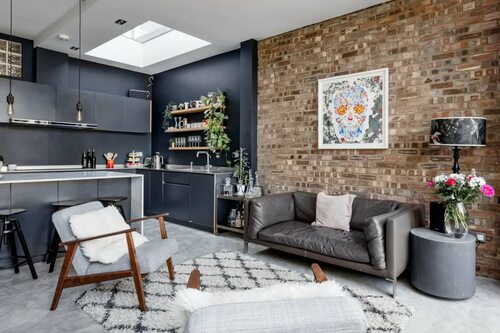 Кирпичные стены - еще один характерный элемент лофт-стиля, который можно использовать в серых тонах. Они придают интерьеру текстуру и создают атмосферу индустриальности.