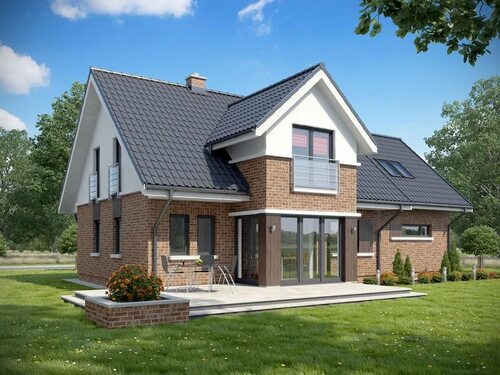 Классический стиль кирпичного дома с мансардой подчеркнет его элегантность и изысканность. Высокие окна, балконные решетки и декоративные элементы создадут уникальный облик вашего дома.