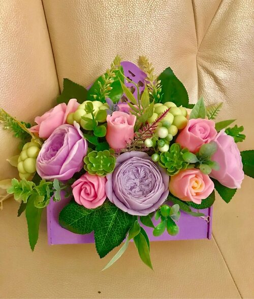 7. Поставьте готовый мыльный букет в удобное для вас место. Он будет радовать вас своим внешним видом и приятным ароматом.