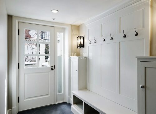 Белый цвет ассоциируется с чистотой, свежестью и порядком. В белом коридоре пыль и грязь будут легче заметны, что способствует более аккуратному уходу за помещением. Кроме того, белый цвет создает ощущение чистоты и порядка, что особенно важно в таком функциональном пространстве, как коридор.