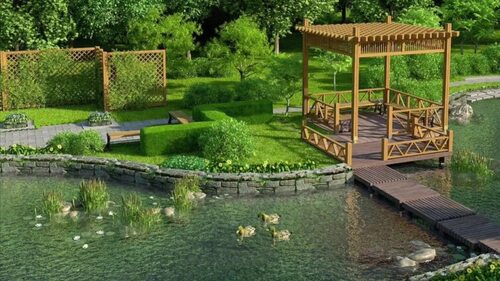 Примеры дизайна участков с прудом