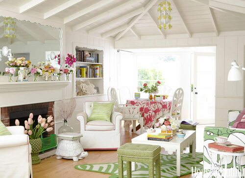 Не забывайте о текстиле! Выберите ткани с цветочными узорами или полосками для штор, покрывал и скатертей. Разместите мягкие пуфики и подушки на мебели, чтобы создать уютные уголки для отдыха.