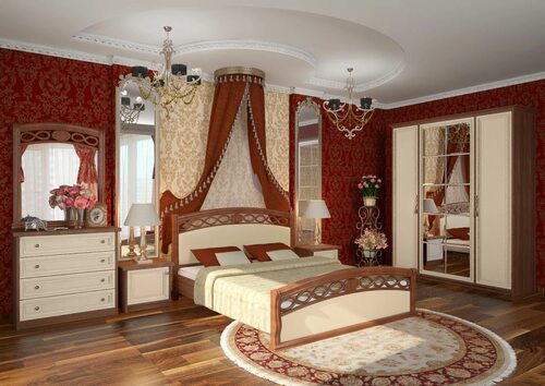 Для создания более традиционного и уютного интерьера можно выбрать классическую спальную гарнитуру из темного дерева. Такой вариант будет отлично сочетаться с другими деревянными элементами в комнате и придавать ей теплоту.