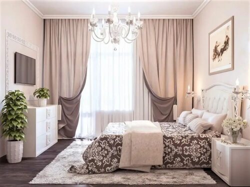 Если ваша спальня оформлена в классическом стиле, то тройные шторы с пышными и объемными драпировками будут идеальным выбором. Они придают комнате элегантность и шарм, создавая атмосферу роскоши. Вы можете выбрать шторы в нейтральных тонах, таких как бежевый или серый, либо использовать более яркие цвета для создания контраста в интерьере.