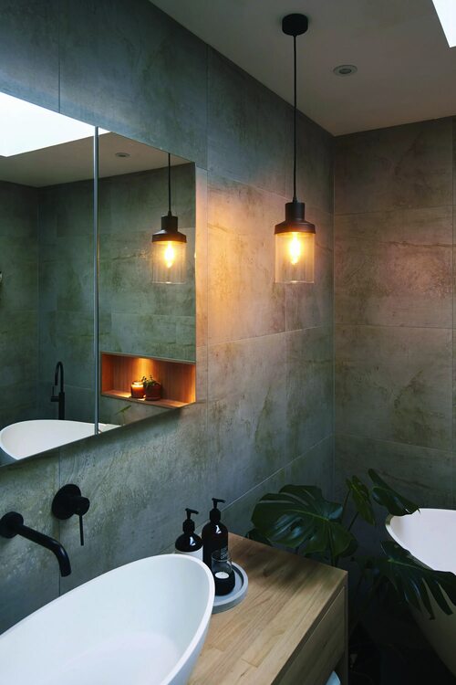 3. Функциональность: Подвесные светильники могут использоваться как основное освещение в ванной, а также для подсветки определенных зон, таких как зеркало, раковина или ванна. Они также могут служить декоративным элементом.