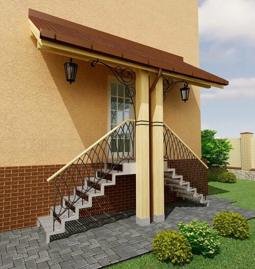 Каменное крыльцо выглядит роскошно и элегантно. Вы можете выбрать мрамор, гранит или другой натуральный камень, который будет гармонировать с фасадом вашего дома. Каменное крыльцо будет долговечным и не требует особого ухода.