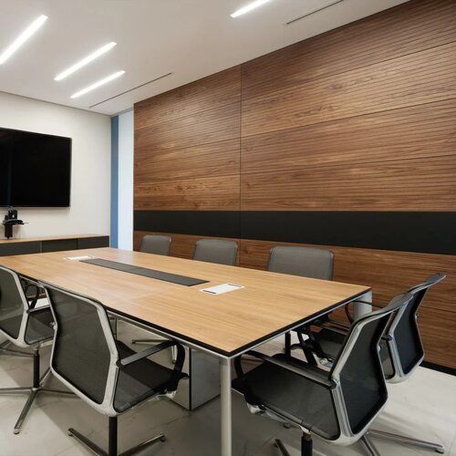 Стеновые панели отлично подходят для декоративного оформления офисных помещений. Вы можете использовать их для создания акцентных стен или оформления стен в зонах отдыха или переговорных комнатах.