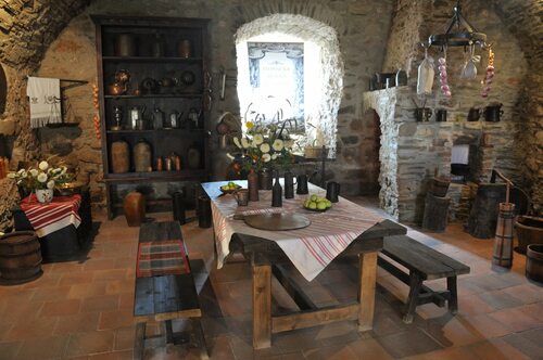 Средневековые дома славились своими каменными стенами и арками, которые не только служили защитой от внешних угроз, но и создавали особую атмосферу внутри помещений. Камень использовался как строительный материал, а также для декоративных целей. Резные арки добавляли элегантности и изысканности интерьерам средневековых домов.