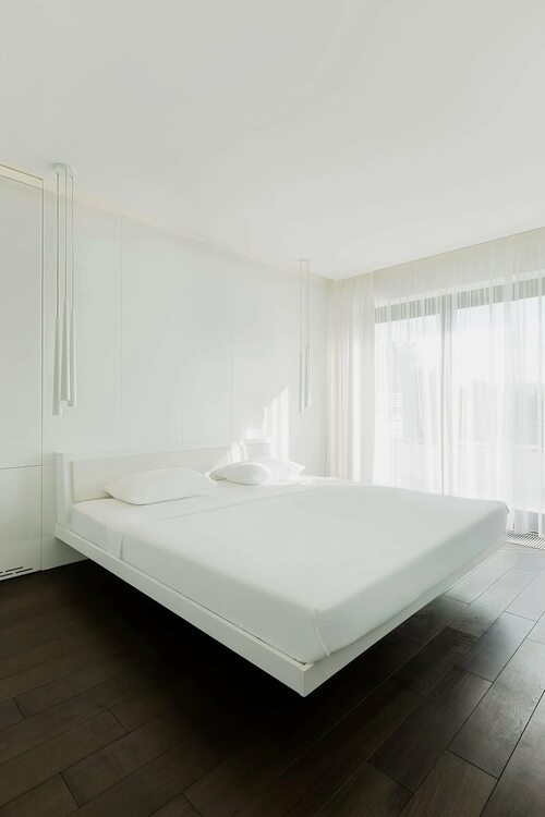 Основная цветовая палитра для белой спальни в минималистическом стиле, как можно догадаться, - белый. Однако, можно добавить некоторые оттенки серого или кремового для создания более глубокого и интересного визуального эффекта. Важно помнить, что в минималистическом стиле цвета должны быть спокойными и нейтральными, чтобы сохранить чувство чистоты и простоты.