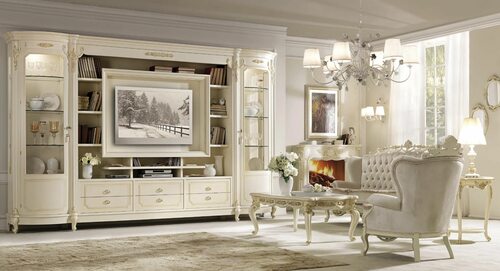 Классическая мебель характеризуется изящными формами, изготовлением из натуральных материалов и высоким качеством исполнения. В гостиной она придает особый шарм и элегантность. Рассмотрим несколько ключевых элементов классической мебели, которые можно использовать в гостиной.