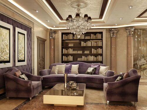 1. Цветовая палитра: для создания атмосферы арт-деко гостиной выбирайте темные оттенки, такие как черный, темно-синий, бордовый и т.д. Комбинируйте их с золотыми и серебряными акцентами.