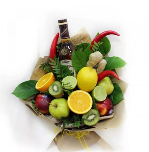Если ваш мужчина является любителем гурманских угощений, то букет с коньяком и различными деликатесами станет идеальным подарком. Добавьте к бутылке коньяка разнообразные сыры, колбасы, орехи и шоколадные конфеты. Можно также включить в композицию фрукты или оливки. Расположите все угощения в стильной корзине или на деревянной подставке, чтобы создать эффектный и аппетитный букет.