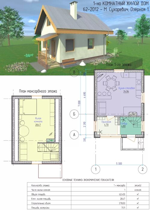 Этот проект представляет собой двухэтажный дачный домик с открытой планировкой и деревянной отделкой. На первом этаже расположена гостиная с камином, кухня, ванная комната и спальня, а на втором этаже - детские комнаты и вторая ванная комната. Домик оформлен в скандинавском стиле с натуральными материалами и светлыми тона, создающими атмосферу уюта и спокойствия.