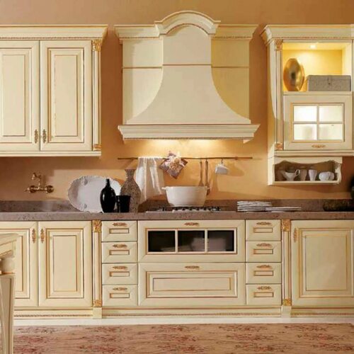 Мебель в стиле кухня классика слоновая кость должна быть изысканной и элегантной. Фасады шкафов могут быть украшены резными элементами или французскими рамками. Ручки и фурнитура могут быть выполнены из латуни или серебра, чтобы подчеркнуть роскошный характер интерьера.