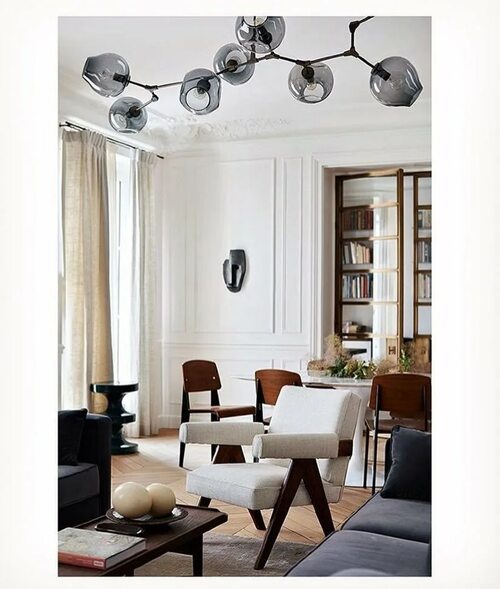 Давайте рассмотрим несколько примеров интерьеров, в которых использована люстра молекула: