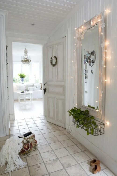 Правильное освещение в прихожей поможет создать нужную атмосферу. В стиле шебби шик предпочтение отдается нежному, рассеянному свету. Используйте гирлянды со свечами, настольные лампы с пастельными абажурами или люстры с кристаллами. Такое освещение придаст прихожей романтический и загадочный вид.