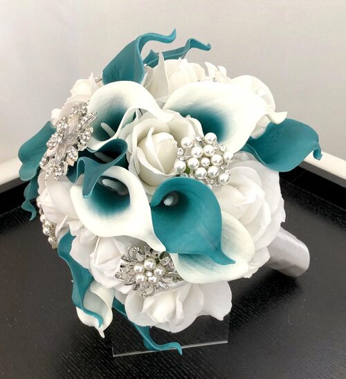 Классический бирюзовый букет невесты - это элегантный и изысканный выбор. Он может быть оформлен одним видом цветов или комбинацией нескольких сортов. Часто в таком букете используются розы, пионы, гортензии и другие цветы с бирюзовыми оттенками. Дополнительные элементы, такие как перья, бусины или кристаллы, могут добавить немного блеска и роскоши. Классический бирюзовый букет невесты подойдет для свадьбы в стиле "гламур" или "ретро".