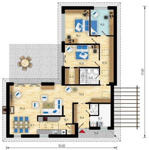Проект 2: Классический одноэтажный дом в форме буквы G