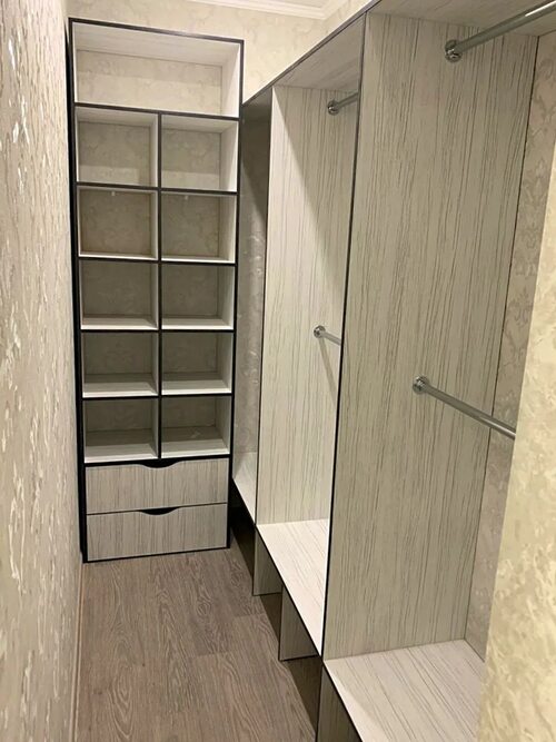 Если вы предпочитаете открытое хранение и хотите создать ощущение легкости и простора в маленькой гардеробной, можно использовать открытые полки и вешалки. Такой дизайн будет особенно актуален, если у вас есть коллекция одежды или обуви, которую вы хотите показывать. Открытые полки и вешалки позволят создать стильный и современный интерьер, в котором каждая вещь будет на своем месте.