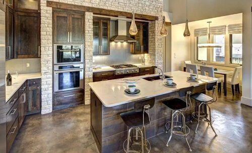 Если вы задумываетесь о том, чтобы отделать кухню камнем и деревом, вот несколько идей, которые могут вдохновить вас: