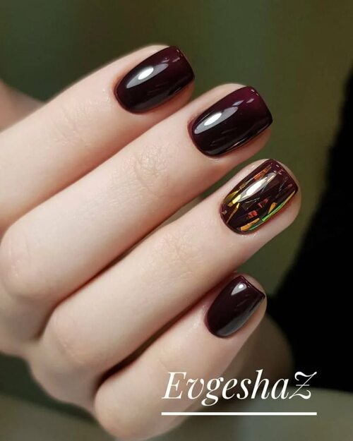 Вдохновляющие фотографии бордового маникюра с фольгой