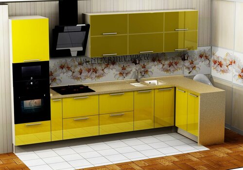 Современные желтые кухонные гарнитуры представляют собой гладкие поверхности с минимальными декоративными элементами. Они отлично сочетаются с хромированной фурнитурой и стеклянными элементами, создавая современный и стильный образ.