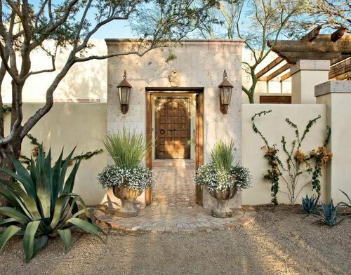 Сочетание камня и кованых элементов создаст элегантный и прочный забор в средиземноморском стиле. Добавьте немного зелени и ярких цветов, чтобы придать ему законченный вид.