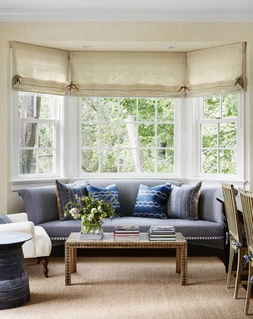 1. Используйте нейтральные оттенки. Римская штора в эркере, выполненная в нежных пастельных тонах, поможет создать спокойную и уютную обстановку. Она будет отлично сочетаться с любым стилем и цветовой гаммой комнаты.