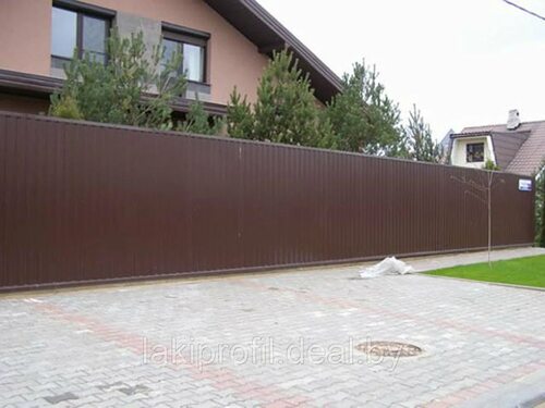 3. Широкий выбор дизайна. Профнастил доступен в различных цветах и фактурах, включая шоколадный оттенок, что позволяет выбрать оптимальный вариант под стиль вашего участка.