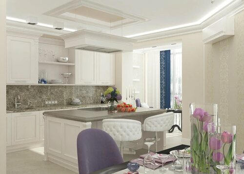 Идеи дизайна интерьеров с кухнями классик в светлых тонах