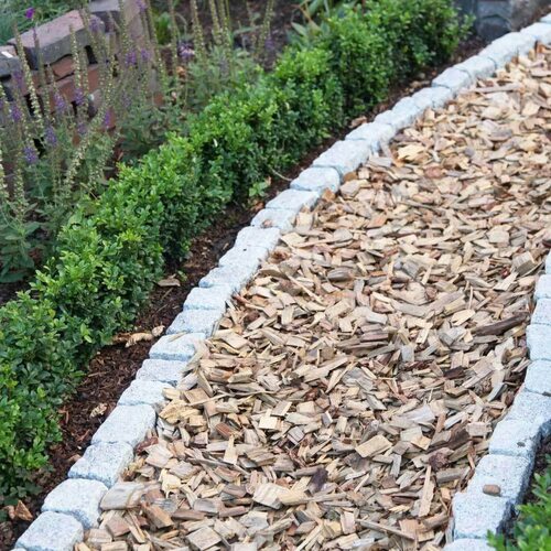 Минеральная мульча, такая как щебень, галька или керамзит, используется для создания декоративных элементов в саду. Она хорошо подходит для оформления дорожек, вокруг деревьев и кустарников.