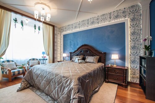 2. Архитектурная глубина: Использование молдингов над кроватью создает визуальный эффект глубины и объемности, делая спальню более привлекательной и интересной.