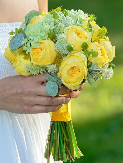 3. Добавьте зелень и листья для придания объема и естественности букету.