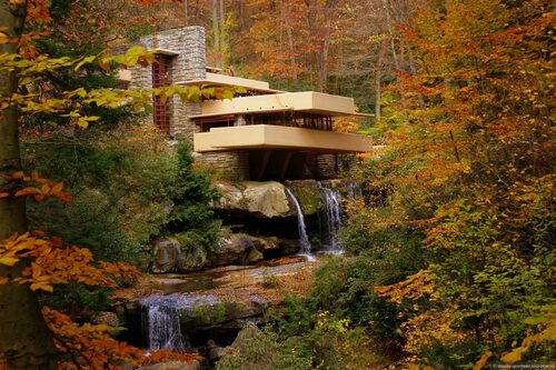 Дом над водопадом райт имеет бассейн, который кажется бесконечным. Это создает иллюзию того, что вода сливается с водопадом и окружающей средой, даря ощущение полного единства с природой.