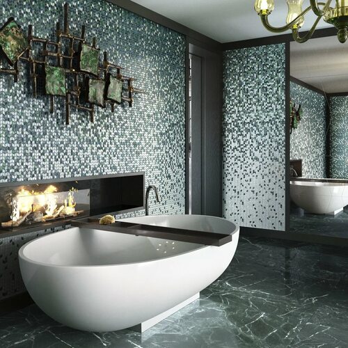 При выборе мозаики и плитки учтите размеры вашей ванной комнаты и ее освещение. Если у вас небольшая ванная комната, выбирайте светлые оттенки, чтобы визуально увеличить пространство. Если же у вас просторная ванная комната, то можно поэкспериментировать с яркими цветами и нестандартными рисунками.