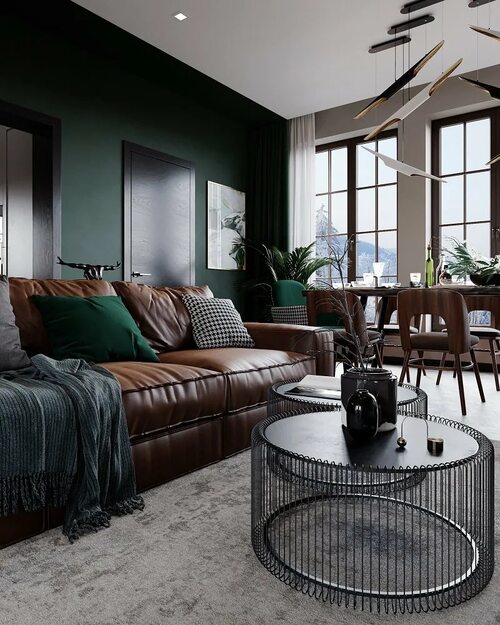 - Используйте темно-синий или темно-зеленый цвет для создания атмосферы природы в вашем интерьере. Добавьте растения и натуральные материалы, чтобы подчеркнуть этот эффект.