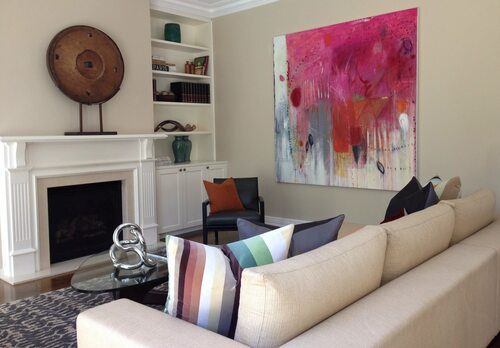 Для интерьеров в стиле минимализма характерны простые формы и нейтральная цветовая палитра. Большая абстрактная картина с яркими акцентами станет отличным способом добавить в интерьер яркость и энергию.