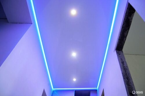 2. Равномерное освещение: Подсветка внутри натяжного потолка обеспечивает равномерное и мягкое освещение всего помещения. Это особенно полезно для помещений с низкими потолками, где традиционные светильники могут создать неприятные тени.