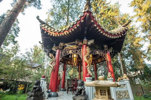 3. Беседка с каменными статуями. Эта беседка украшена каменными статуями, которые представляют собой символы удачи и благополучия. Они создают атмосферу спокойствия и гармонии.