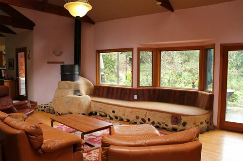 2. Минималистичный дизайн с печкой и лежанкой