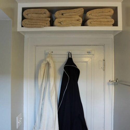 Создайте на полке место для хранения полотенец. Сложите их аккуратно, чтобы они не занимали много места, и всегда были под рукой, когда вам понадобится.